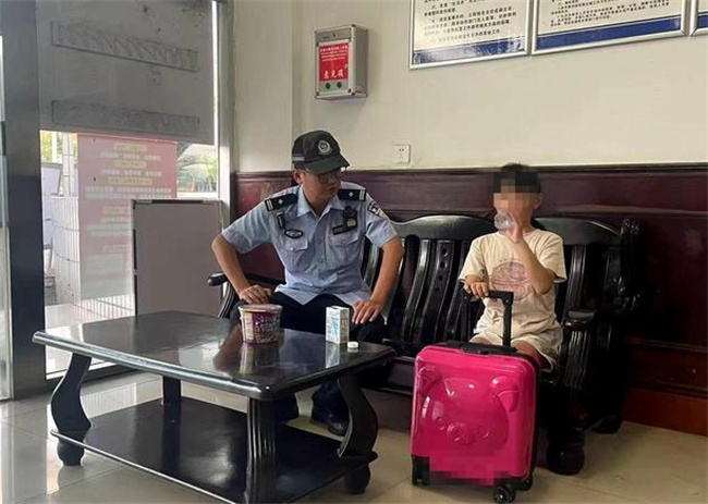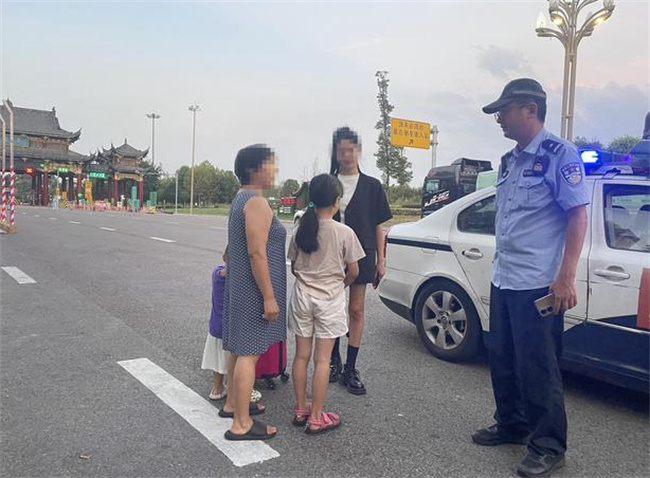 民警随即赶往小女孩所在路段,于当日18时25分在隆昌停车区入口处发现了小女孩。民警发现,由于天气炎热,小女孩此时满脸通红,头发和衣服已被汗水浸湿。民警将小女孩带到警务室,打开空调,还为小女孩提供了矿泉水。待小女孩缓过劲后,民警边安抚边询问情况。